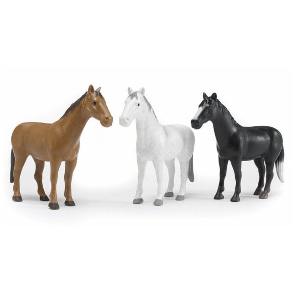 The horses are available in brown only. As a complement to play, these horses are perfect for children's imaginations: Farm, transport, etc.